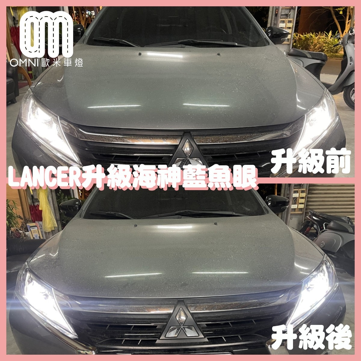 三菱LANCER原廠鹵素大燈,車主先自換LED燈泡,因亮度與光型沒有實際改善,