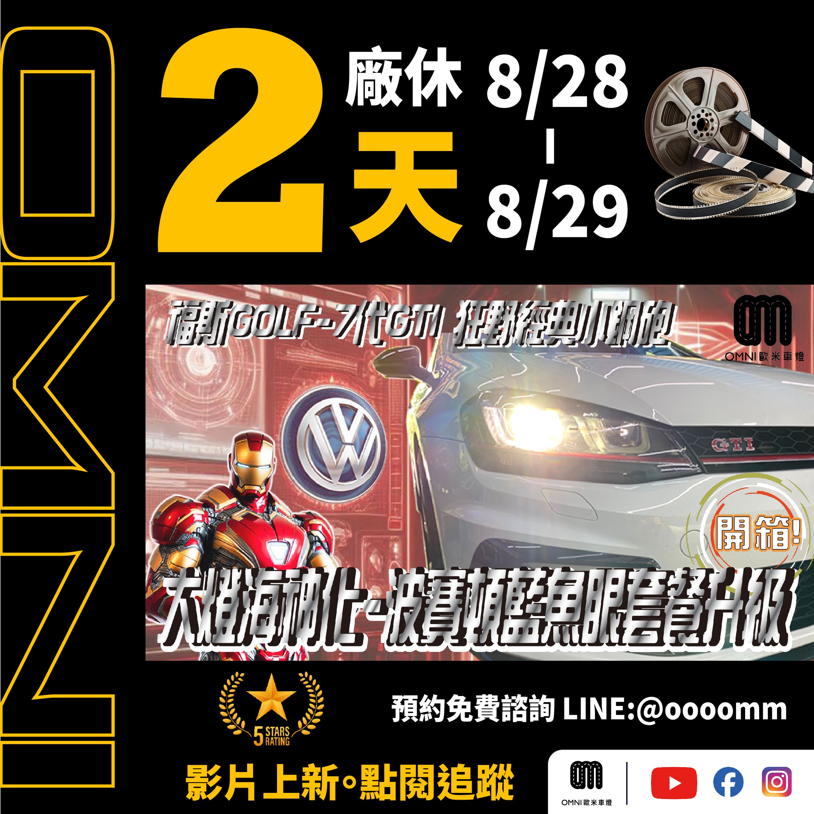 | 8/28(三)+8/29(四) 廠休兩天!福斯GOLF7代GT I狂野經典小鋼砲 大燈海神化-波賽頓藍魚眼套餐升級 開箱!