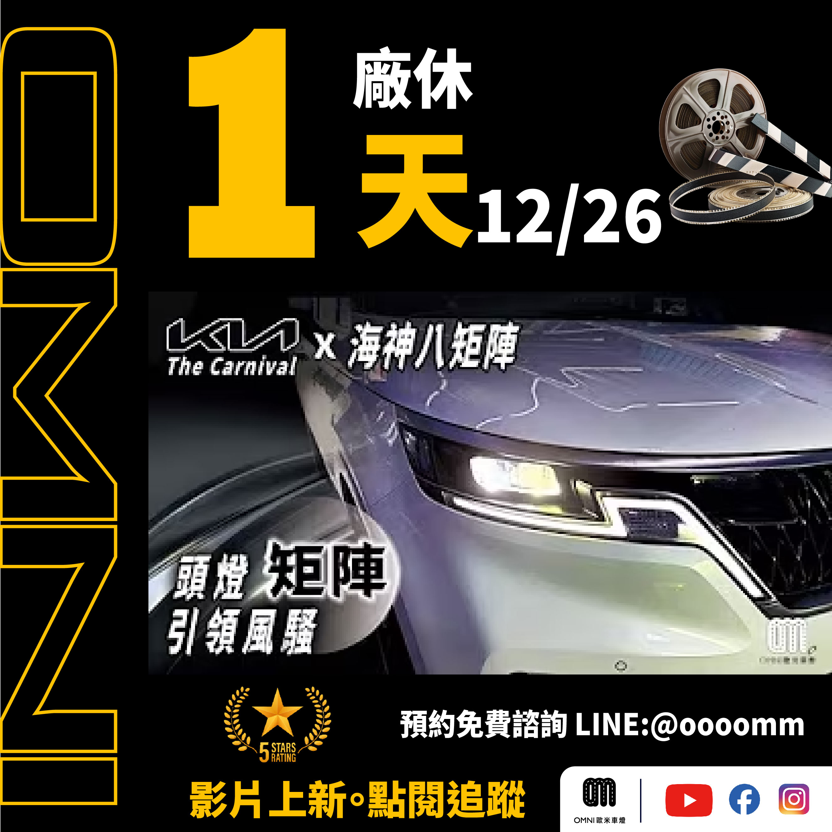| 12/26(四) 廠休1天! KIA X 海神八矩陣,頭燈矩陣 引領風騷