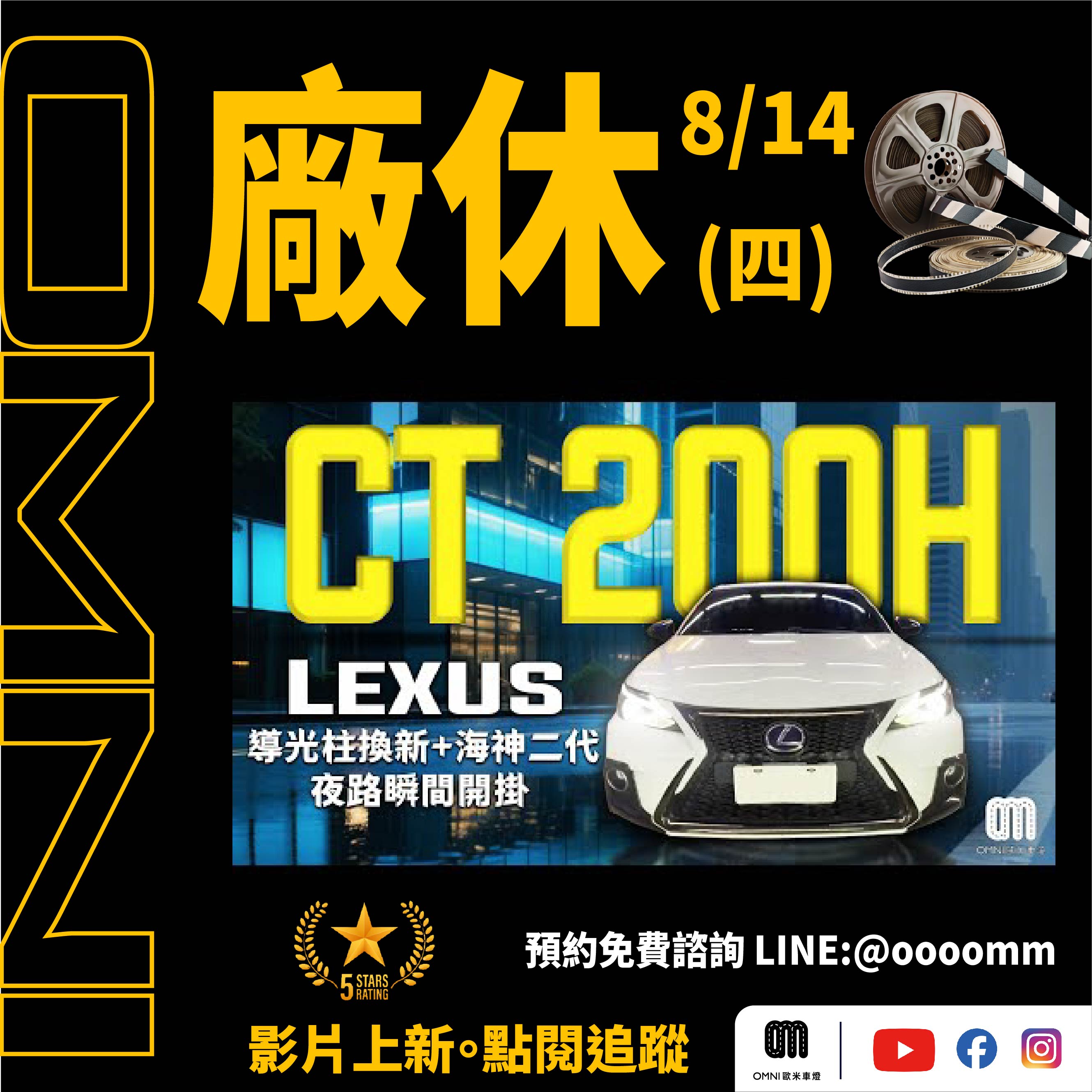 | 8/14(四) 廠休! 【Lexus CT200h|魚眼升級 × 日行燈導光柱全數更換】