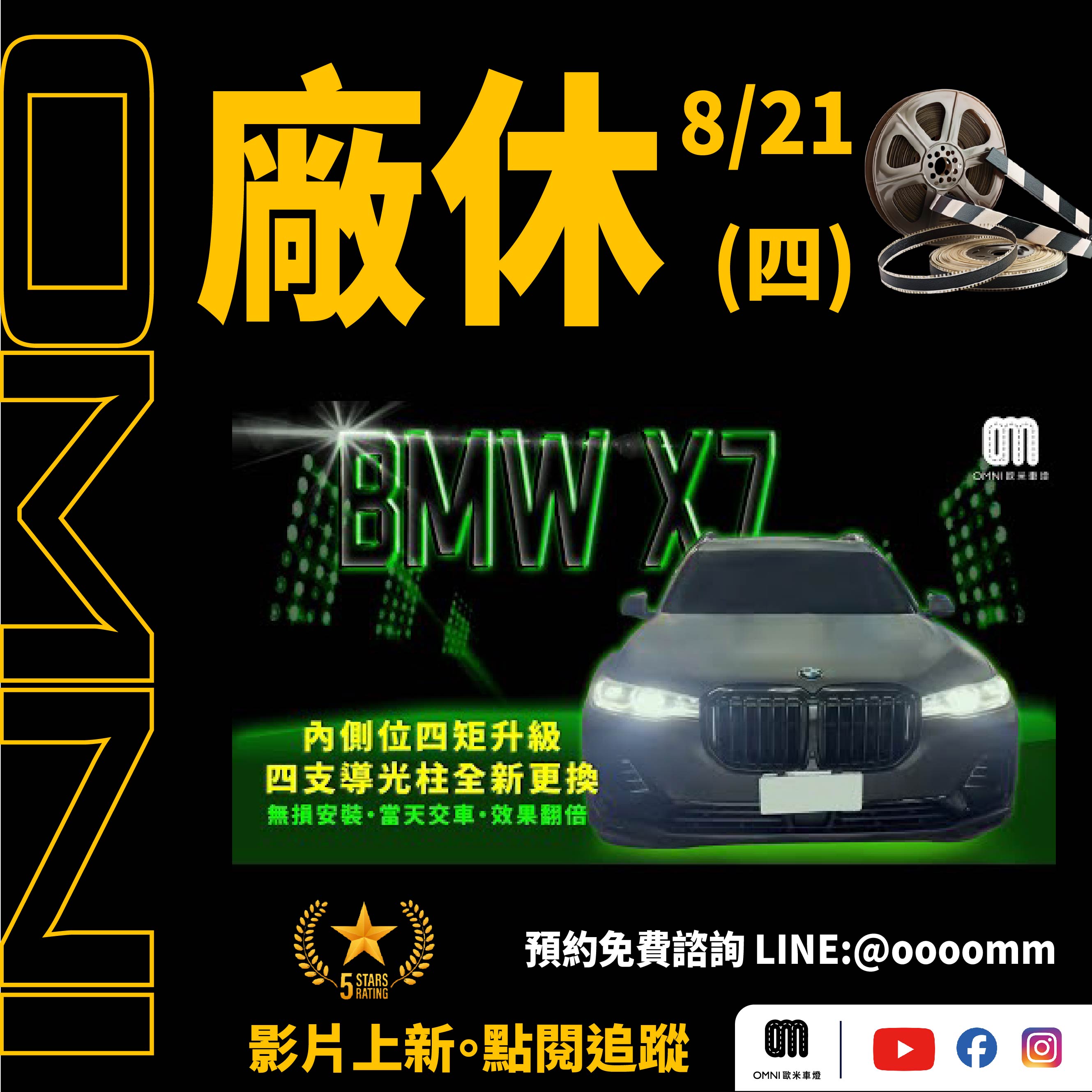 | 8/21(四) 廠休! 【BMW X7|內側大燈升級 × 導光柱同步更換一對】
