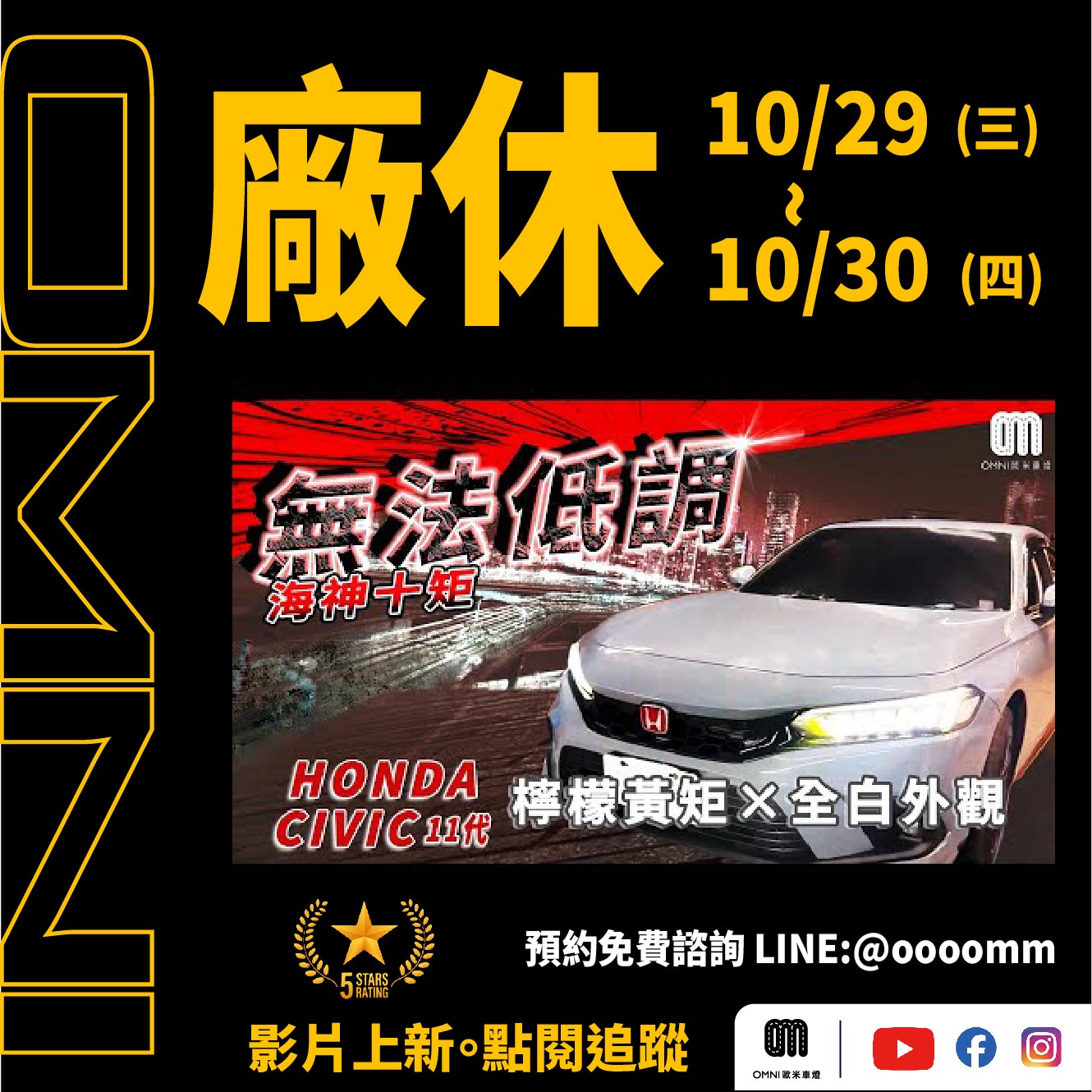 OMNI 歐 米 車 燈 公 告 ▲11/6(四) 廠休一天▼