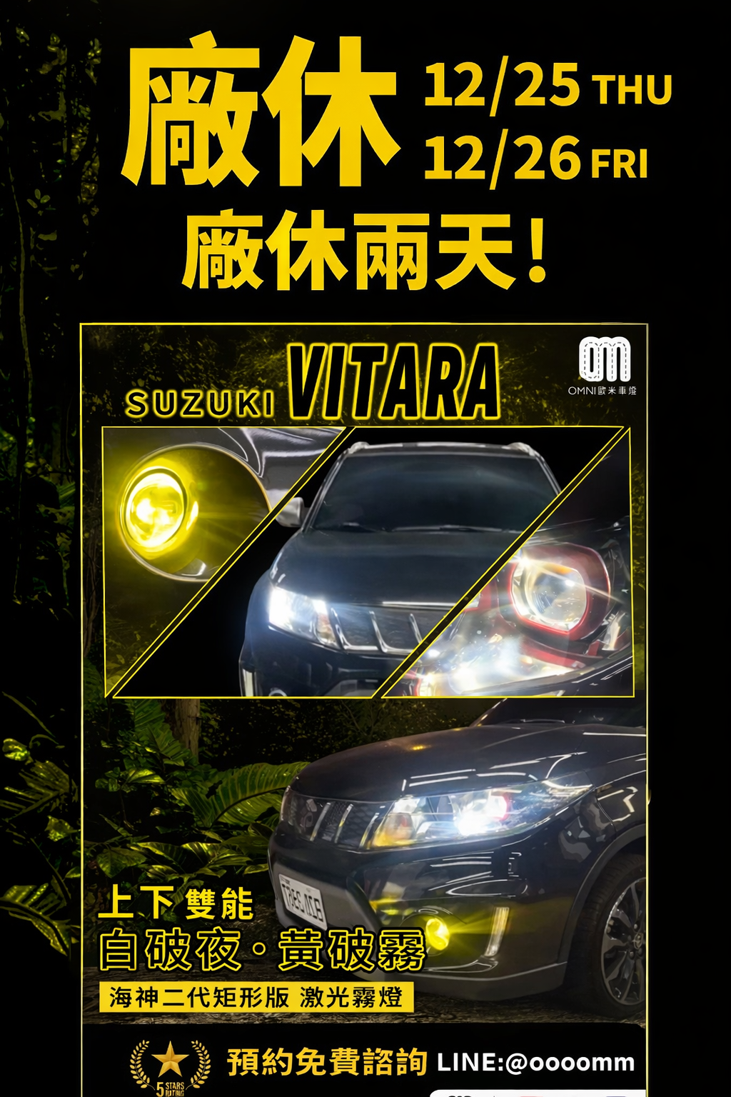 OMNI 歐 米 車 燈 公 告 ▲12/25(四)、12/26(五) 廠休二天▼