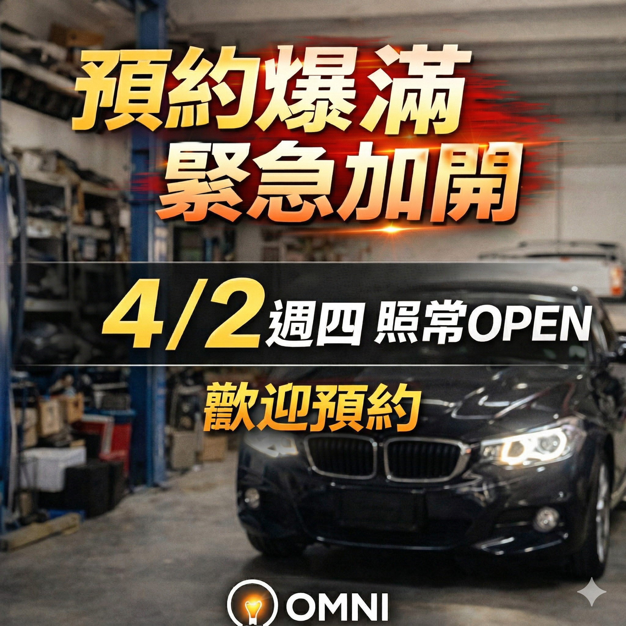 OMNI 歐 米 車 燈 公 告 預約爆滿・緊急加開 ▲04/02(四)照常OPEN▼-Omni歐米車燈-車燈改裝,魚眼車燈改裝,台中車燈改裝