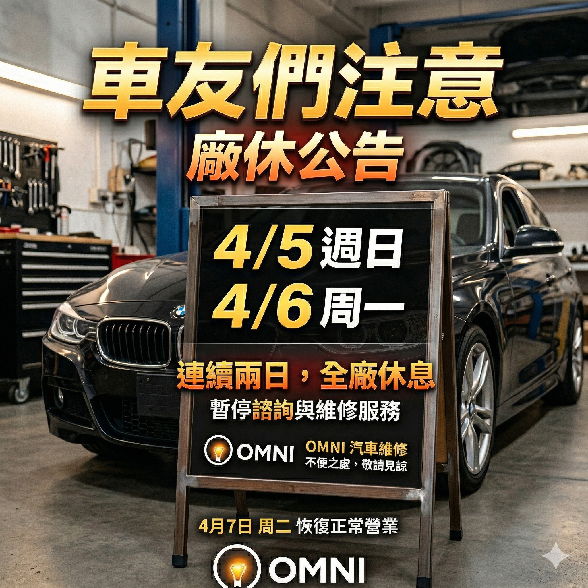 OMNI 歐 米 車 燈 公 告 ▲04/5(日) 4/6(一) 廠休二天▼